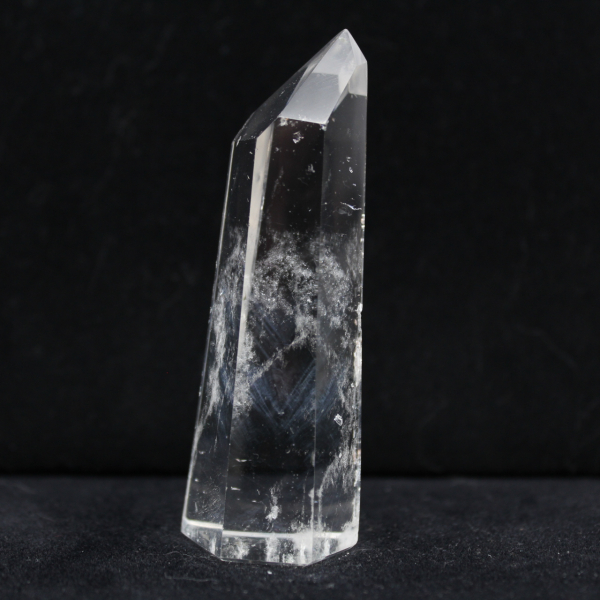 These rock crystal prisms from Madagascar are distinguished by their purity. These hexagonal quartz formations feature remarkable transparency and perfectly defined faces. Sourced from the island's ancient geological formations and resurfaced, these mineralogical specimens illustrate the richness of Madagascar's subsoil.