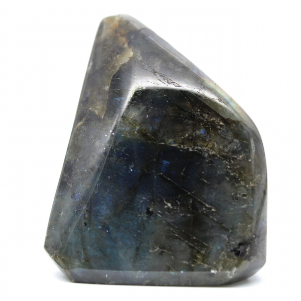Labradorite, is a mineral renowned for its beautiful iridescent colours, called labradorescence, this optical property of this rock is due to the diffraction of light within its crystalline structure. Microscopic inclusions and micro-fractures present in the crystal act like tiny prisms, dispersing white light into a spectrum of vivid colours, usually blues, greens and yellows. Formed in igneous rocks, often associated with volcanic environments, labradorite is the result of complex geological processes. Its name comes from the Labrador Peninsula in Canada, where it was first discovered.