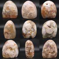 Agate is a microcrystalline variety of quartz, a mineral composed of silica, which generally forms in the cavities of volcanic rocks, where silica-rich solutions are deposited in successive layers. These deposits, often of various colors, create the characteristic patterns of agate, ranging from parallel bands to dendritic shapes.